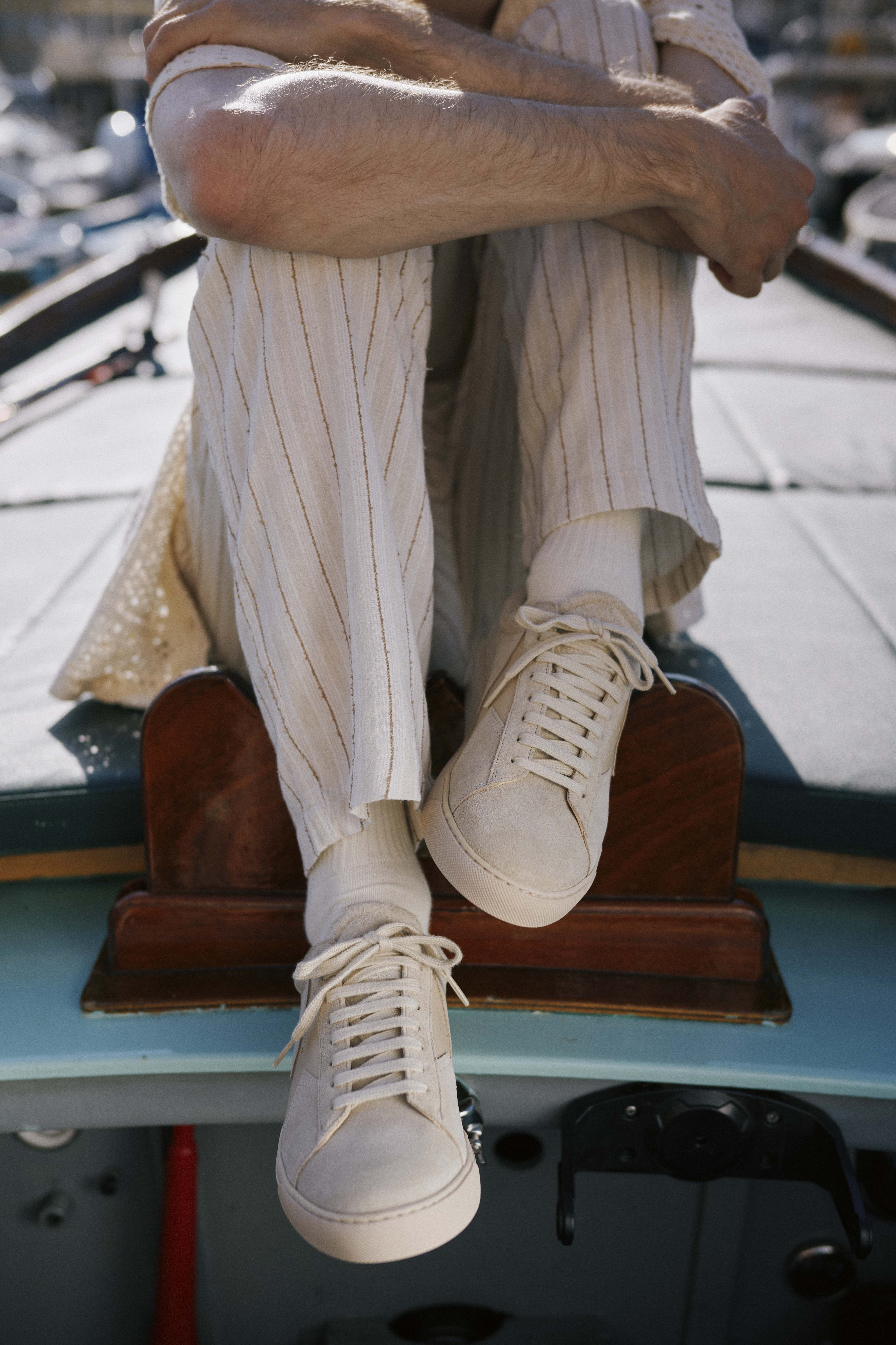 Off-white suede leather sneakers